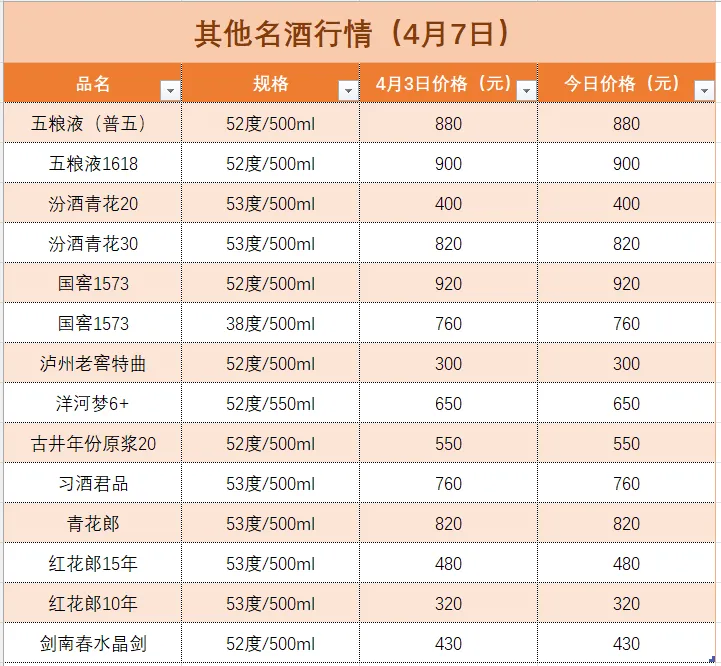 名酒行情(4月7日)