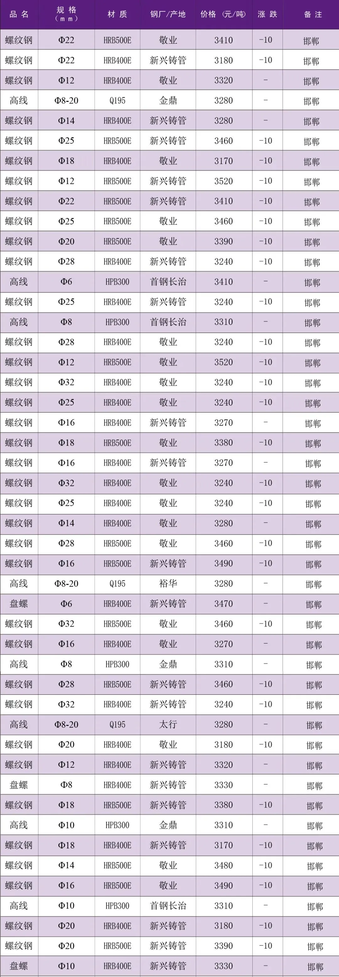 >【价格资讯】4月7日邯郸市场建筑钢材价格行情