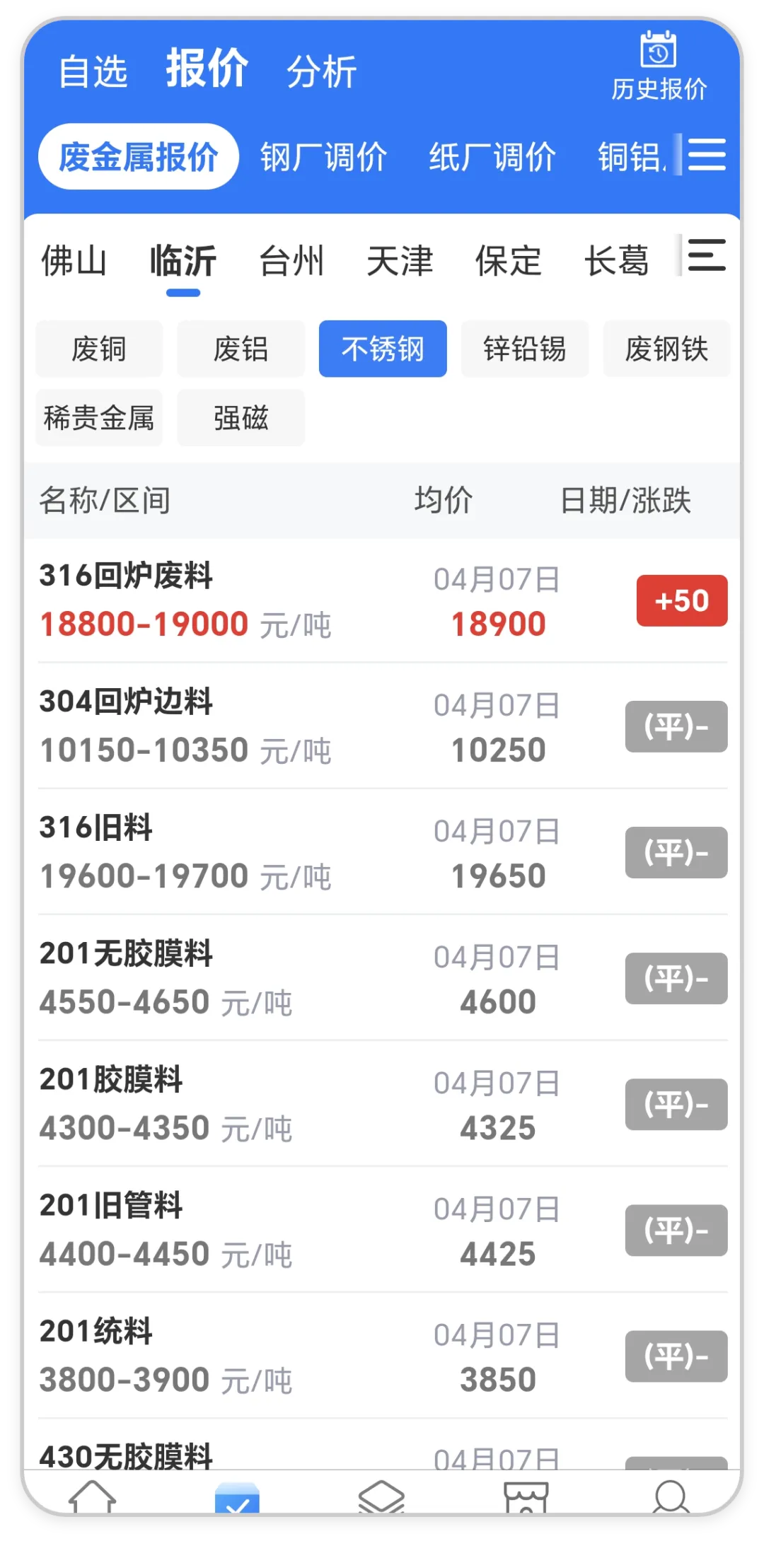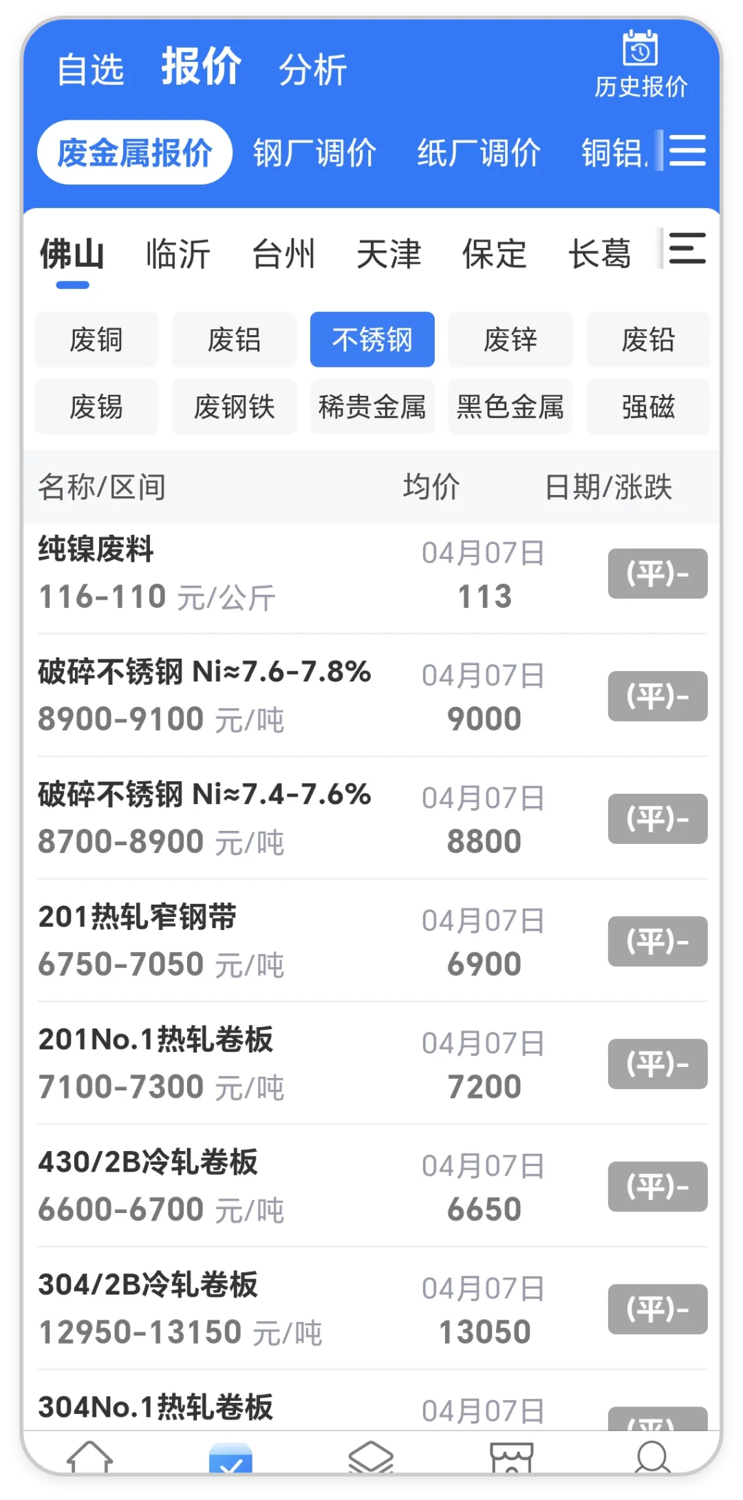 废不锈钢稳价交易!全国废不锈钢最新价格行情(4月7日)