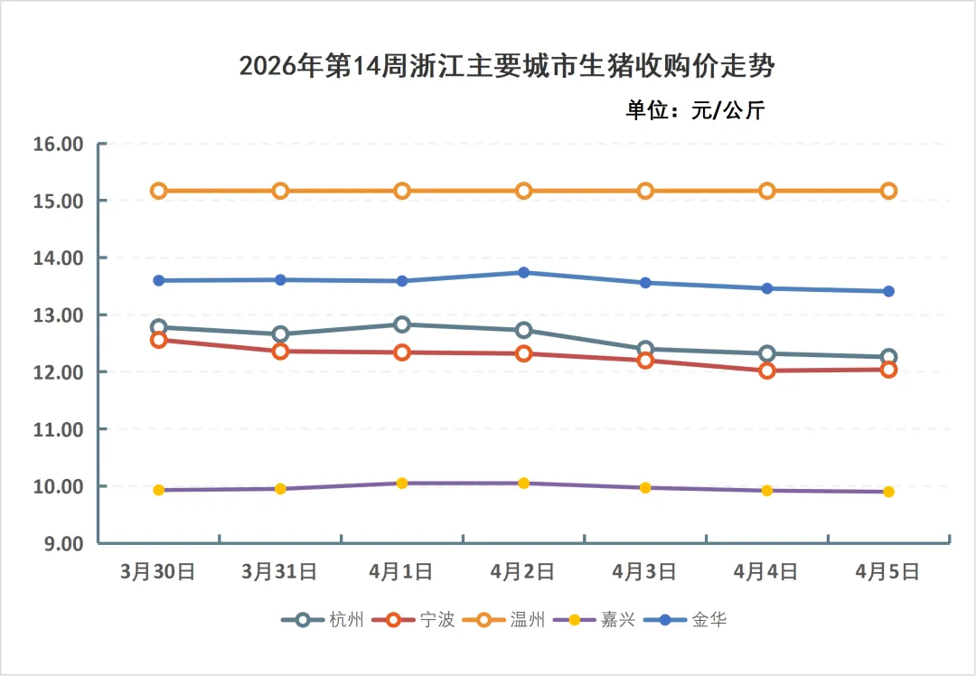 4、浙江2026年第14周生猪价格走势