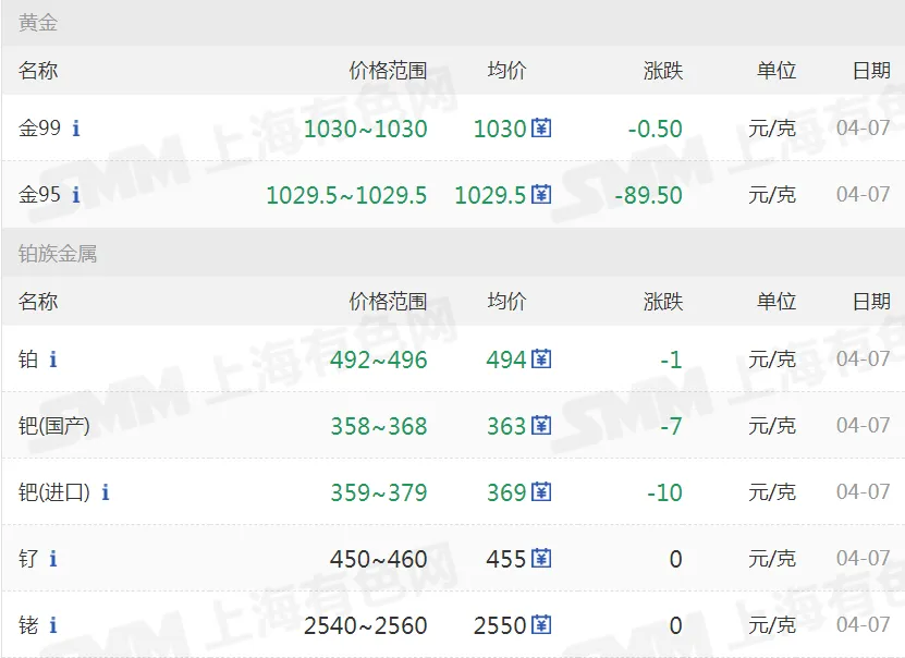 >20260407金银铜铝价格行情