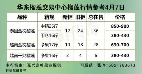 >4月7日华东水果市场榴莲、火龙果行情参考