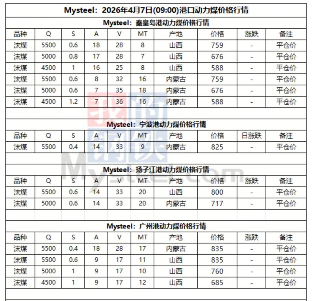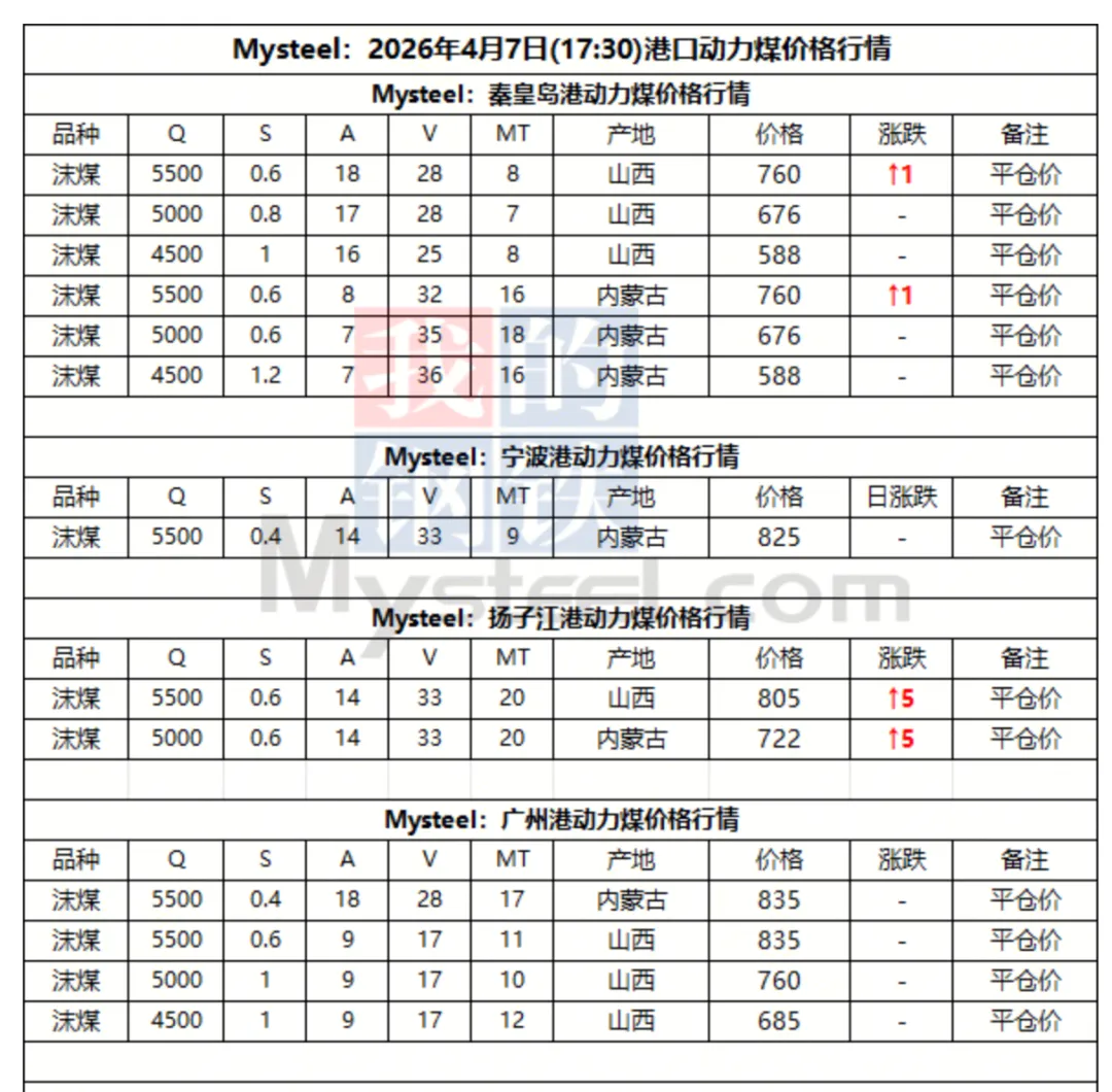 7日港口市场动力煤暂稳运行。现阶段发运倒挂现象仍存,贸易商发运较为谨慎。现货贸易商报价基本保持平稳状态,需求端暂未有明显放量信号,少量刚需找货,下游采购节奏较慢,基本以刚需采购为主,压价现象频繁,交投氛围一般,操作仍以谨慎观望为主,后市需持续关注港口去库速度和实际成交情况。