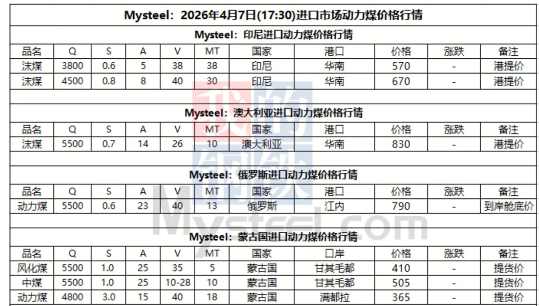 7日进口市场动力煤暂稳运行,海外市场方面,印尼进口煤供应偏紧局面未有明显改观,矿方挺价情绪偏强,当前Q3800巴拿马船FOB报价区间在61-63美元/吨;澳洲远期现货报价受国际市场需求端支撑维持坚挺,当前Q5500巴拿马船FOB报价区间为90美元/吨附近波动。国内市场中沿海电厂库存可用较为乐观,采购多集中于远月交付低卡煤货盘,拿货数量相较此前有所增加,但对高价中高卡煤价格接受度较低,多做流标处理。短期来看,进口市场动力煤价走势预计将延续暂稳运行,后市需关注外矿报价变化及运费波动。