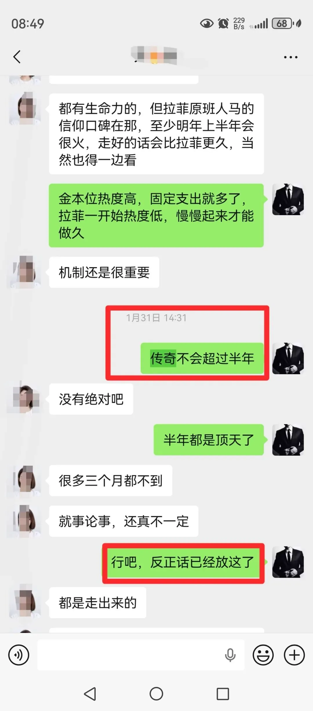 传奇起盘到现在才3个月,还是把其中一个月利润延期的前提下,很多人还对熔断抱有希期望,其实只要你经历过类似项目,你都不该这么乐观,看似保护,实则项目接近尾声的预兆,一旦发生熔断就是恐慌,不要去试探人性…