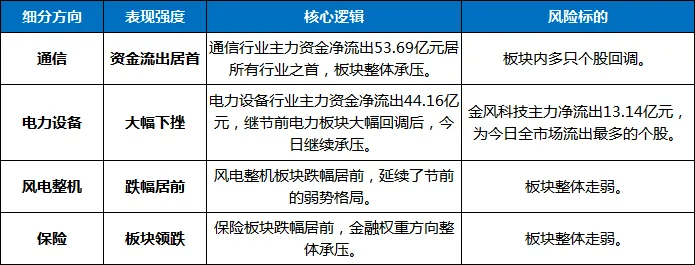 5. 领跌板块:通信、电力设备、风电整机——全线回调
