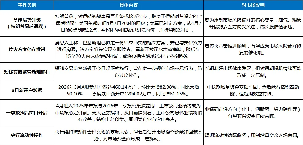然而,外部地缘风险的“靴子”尚未完全落地。特朗普设定美国东部时间4月7日20时为对伊“最后期限”,这一时间节点恰好在A股收盘后的晚间时段。是升级还是缓和?将是影响全球市场风险偏好的核心变量。