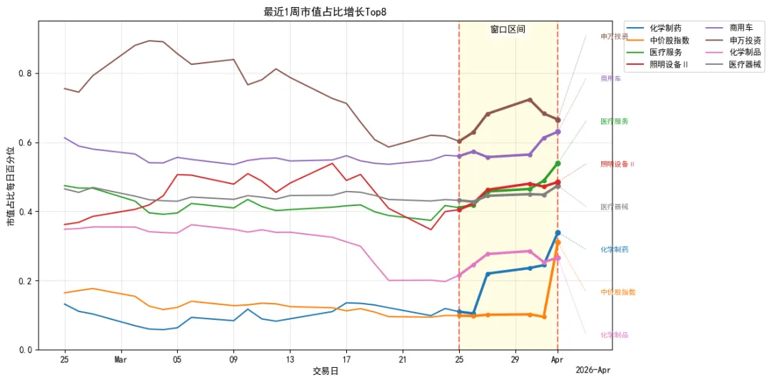 化学制药、中价股指数、医疗服务、照明设备Ⅱ、商用车、申万投资、化学制品、医疗器械