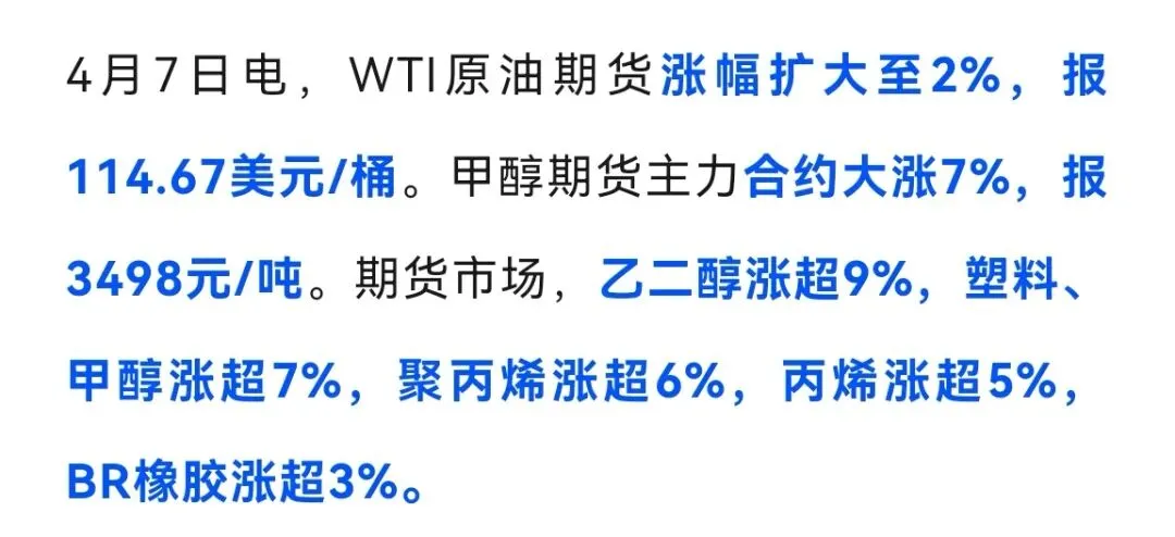 因为很多化工品不仅仅是涨价问题,出现了某一下游原料,上游直接涨价60%,甚至更是上游停售停止报价。