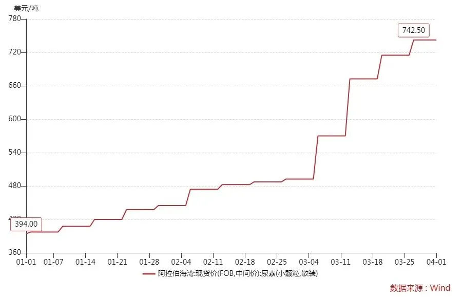 比如现在提到的尿素品种,国外已经涨价到742美元/吨。而国内略微在1800-1900元/吨。