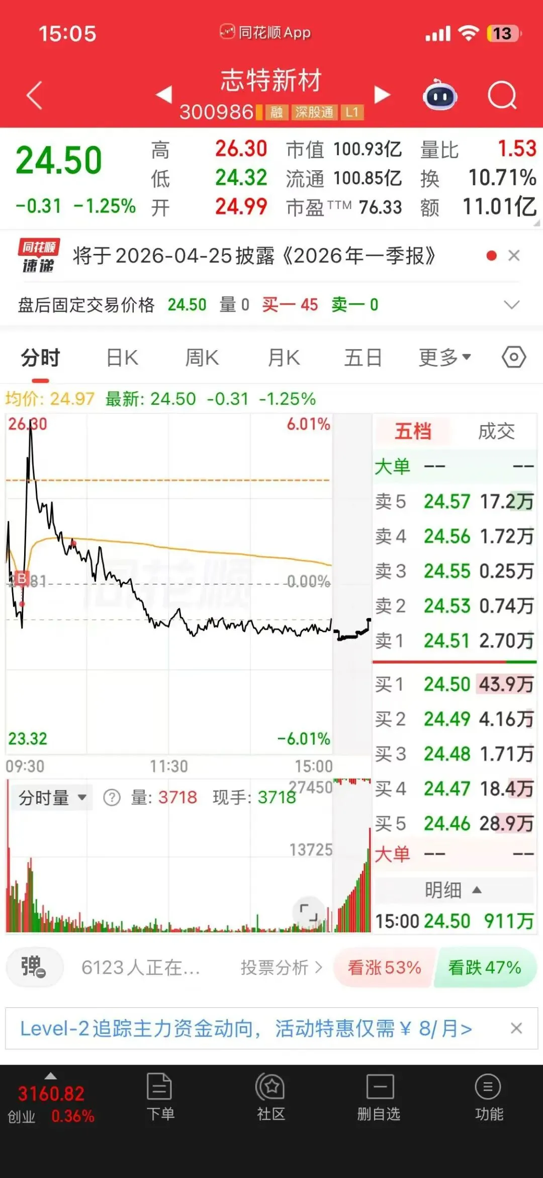 志特新材:明日预计脉冲后回落,难以突破年线压制调仓换股