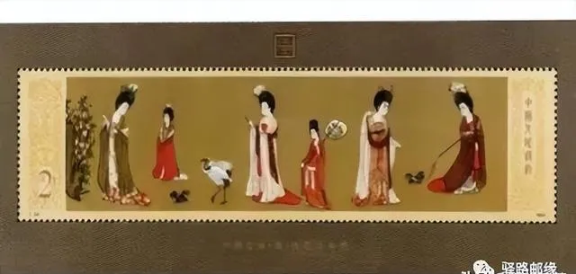 这个横着长长一条的叫仕女图小型张,票面上排着六位仕女,汉服、长袖、细腰、头上顶着花簪,旁边还有只仙鹤和几只麻雀,画风讲究得很,底板选了深褐色,衬得正中间的女子皮肤白得发亮,挺高贵,小时候舅妈就有这么一张,存透明纸袋里,不让小孩乱摸,桌头柜里躲着,偶尔拿出来说,女孩子看这个画美得过瘾,全张票没什么边角损坏,真正留得住的没几张,这几年谁家要是能完整地整出来这么一张,全品的,转眼就能翻三倍五倍,身价直接改姓了,奶奶见我盯着,还开玩笑说:“丫头,画上的人哪有我们老家姑娘能干。”以前这个价压到七八百,现在行情一拉,过千都不算啥稀奇了。