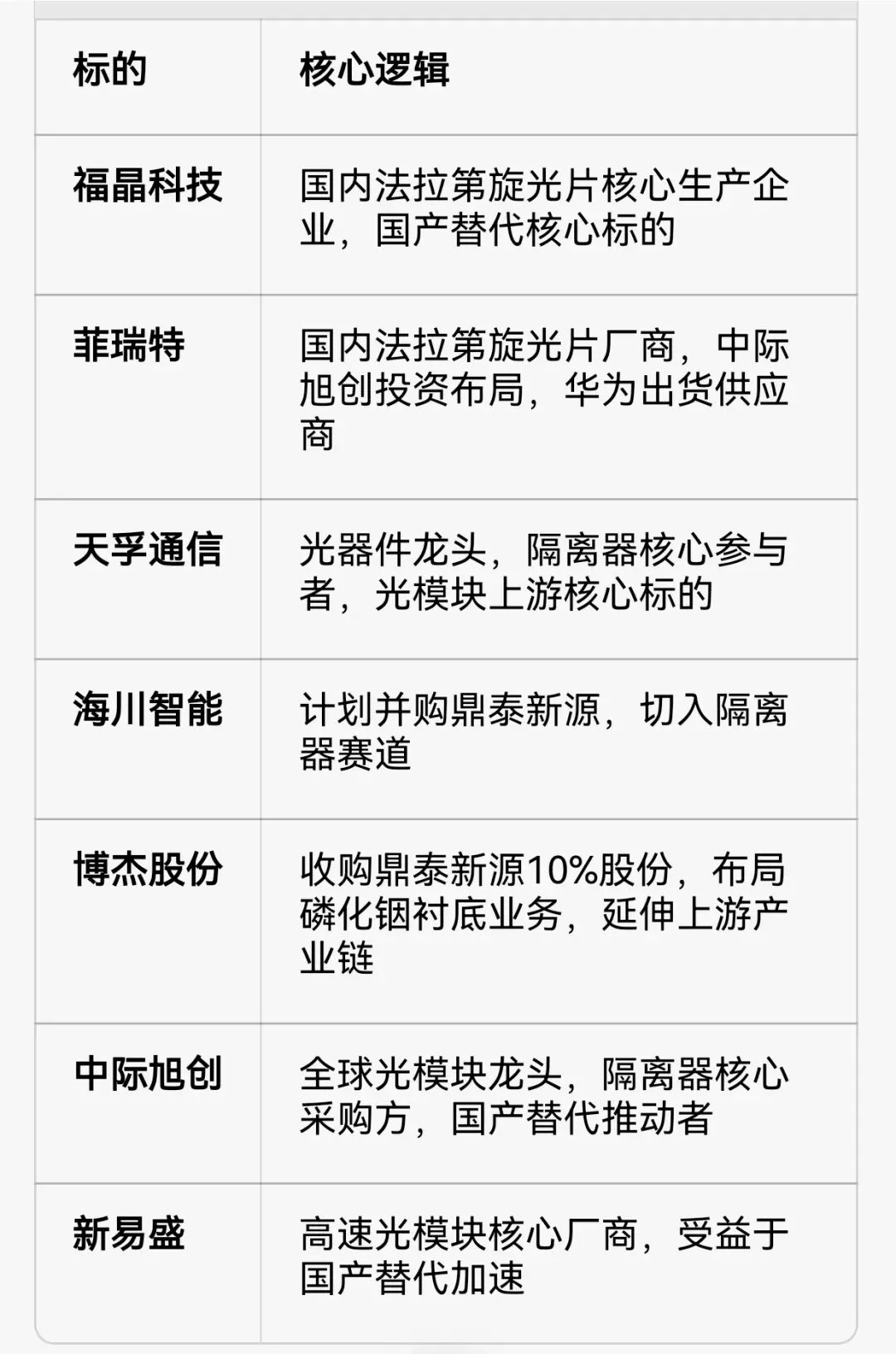 四、核心标的全梳理(法拉第旋光片+隔离器+磷化铟衬底)
