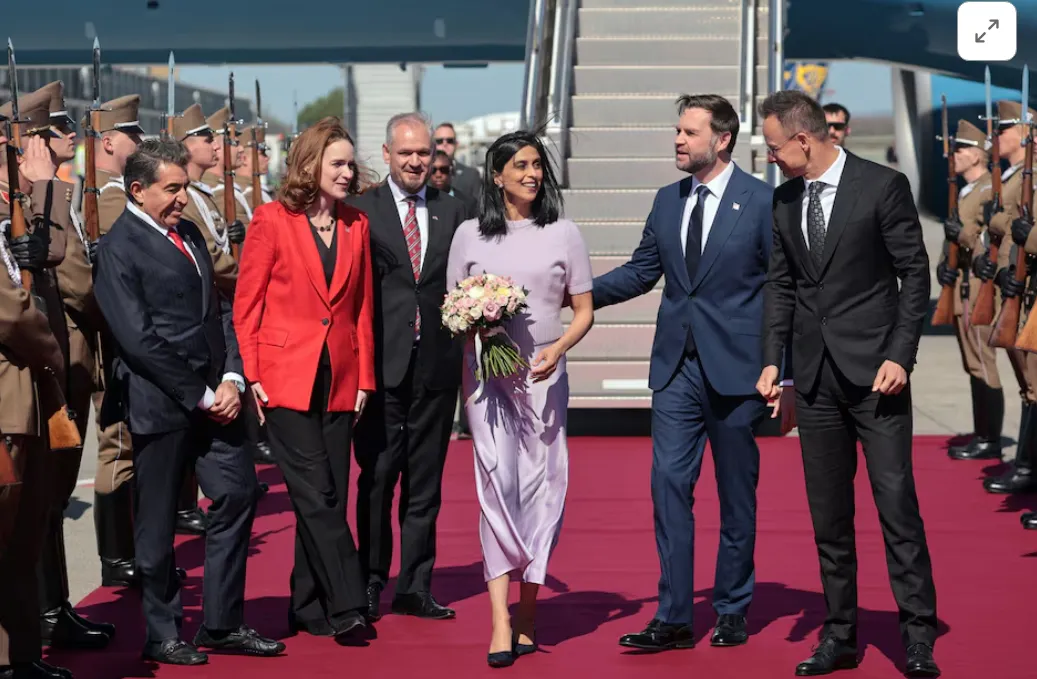 匈牙利外长西雅尔托和匈驻美大使塔卡奇4月7日在布达佩斯机场迎范斯乌莎。路透社/恩斯特/普尔https://www.zaobao.com.sg/news/world/story20260407-8857090