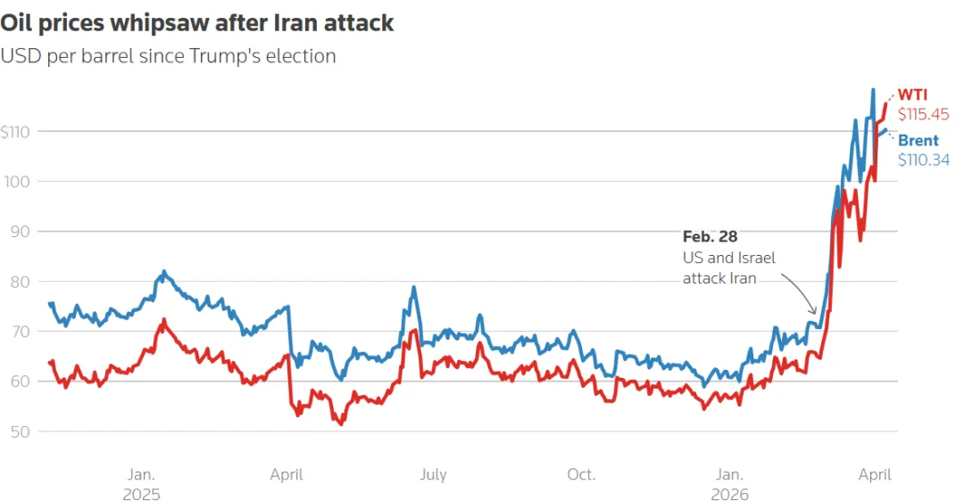 - 价格中枢上移:布伦特原油已至110-120 美元/桶附近。特朗普政府要求停火限期已过,周三市场将处于极度恐慌定价。