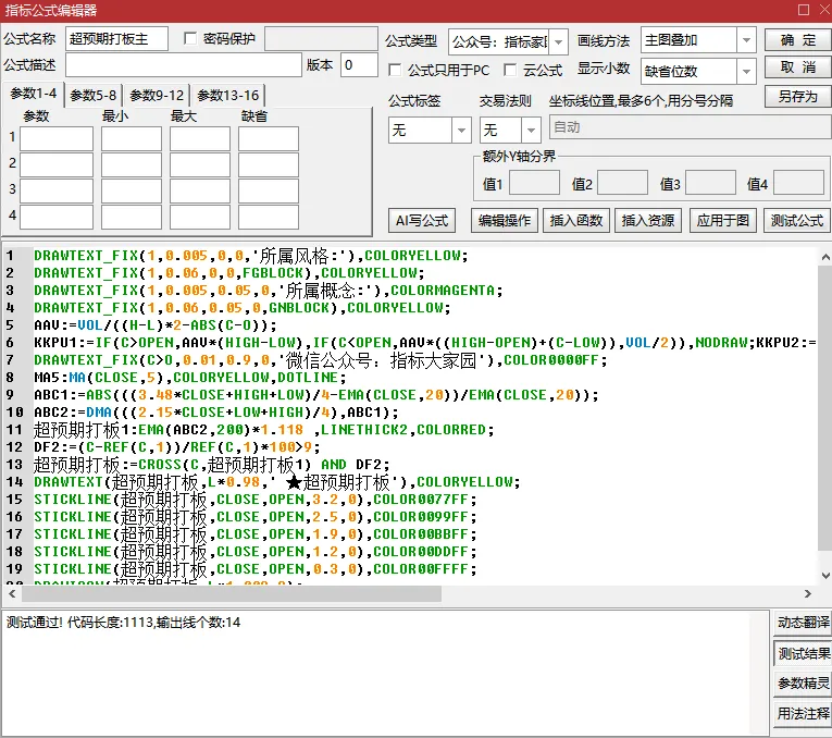 重要提示:本指标公式源码属于技术指标,仅作为知识分享和学习参考,不做为投资依据。点击上方【指标大家园】关注,置顶+星标每天订阅,分享更多的指标公式源码。DRAWTEXT_FIX(1,0.005,0,0,'所属风格:'),COLORYELLOW;