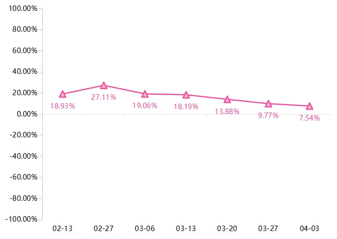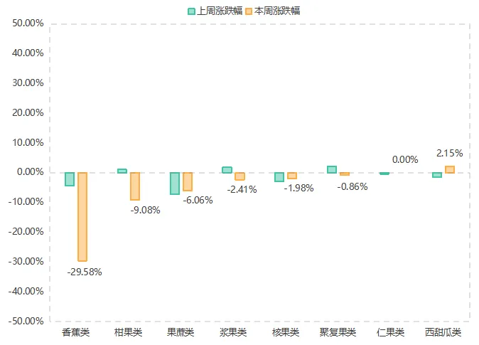 本期水果价格指数环比下降3.68%,延续下行趋势,但同比仍高7.54%。