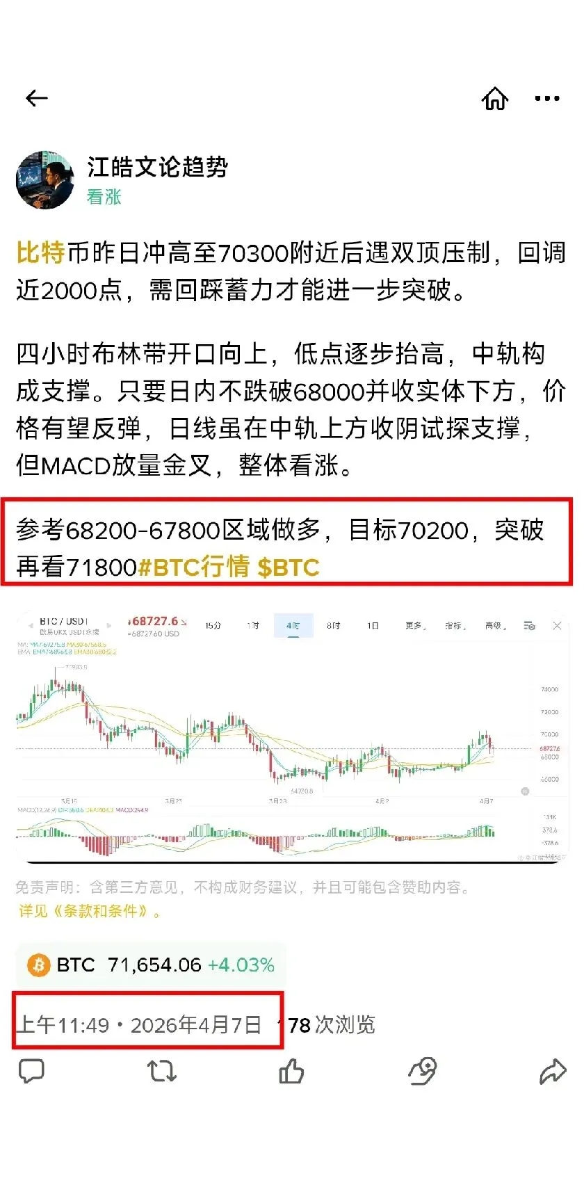 凌晨时段,市场突然出现一波强势拉升,比特币价格一度上探至727附近。昨日全天,我一直建议大家采取回调接多的策略,这一轮操作成功捕获了空头,随后又顺势收获了多头。