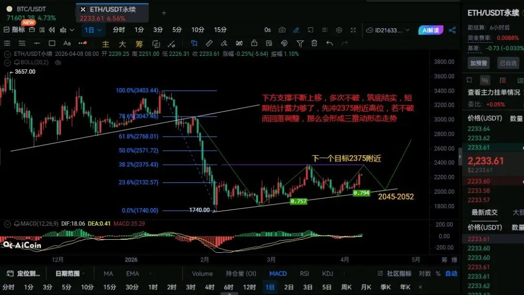 以太操作建议:回踩2210附近多,防守2180,目标2280-2300附近,破位看2370,不破接空。(策略仅供参考)