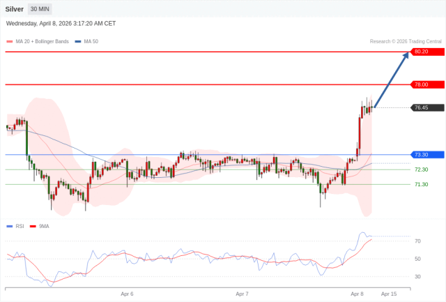 No.1 | 在 73.30 之上,看涨,目标价位为 78.00 ,然后为 80.20 。 |