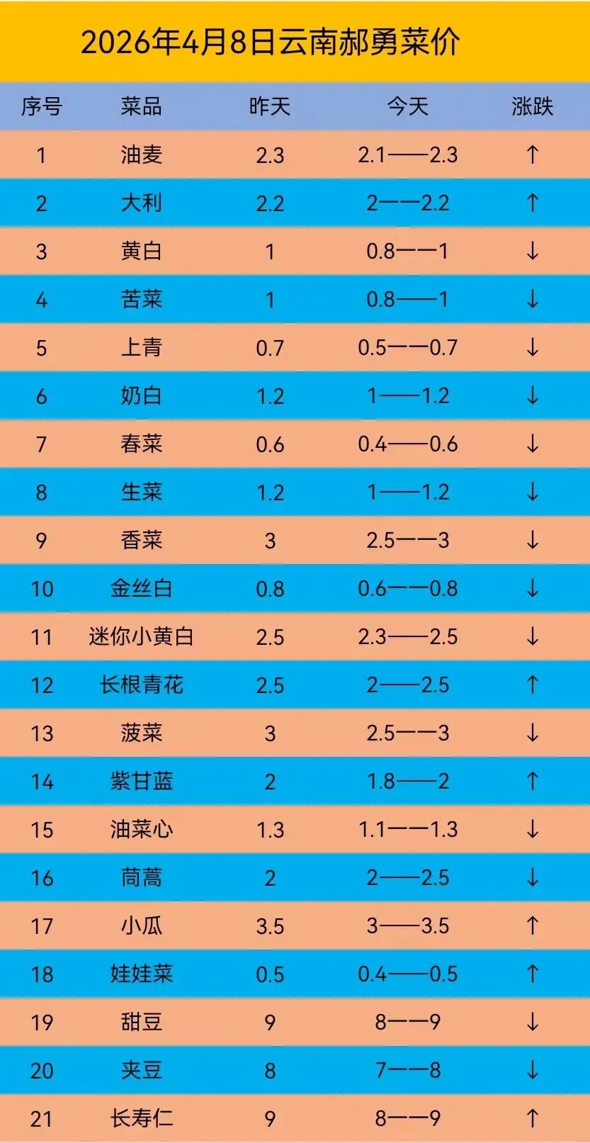 产区天气好,油麦大利的大菜也不多,之前价格合适的时候,冷库也囤了不少货,现在大家也不抢货。销售市场不好走货,全国各地跟风种植面积大。现在北方产区也开始大量上市,广东福建等销区本地叶菜也还有一定的量,对云南叶菜冲击比较大。市场拼质量,好货精品货好卖,中货难卖。预估后续行情还是平稳为主,没有涨价的机会,可能有1-2毛的小幅下跌。