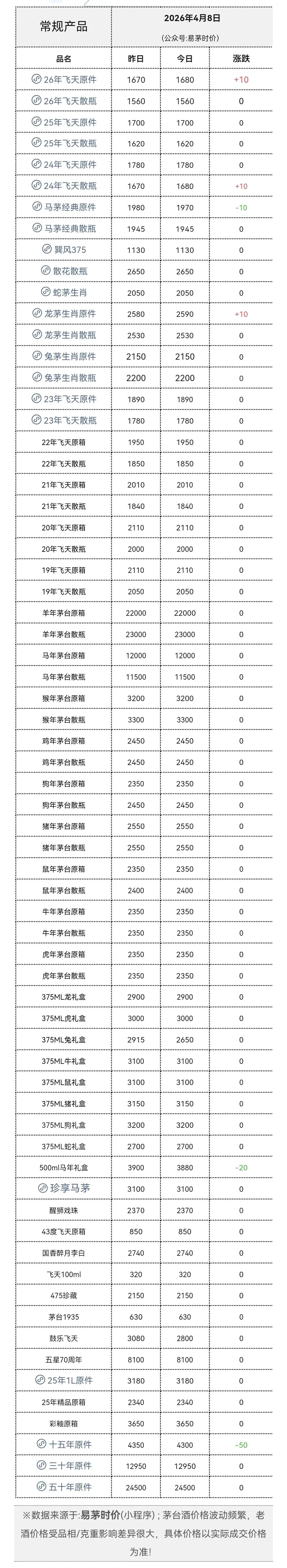 茅台行情价丨2026年4月8日|酒价整体平稳