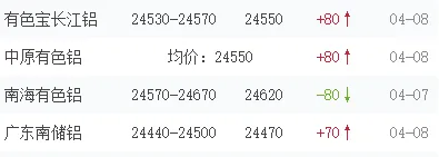 长江铝锭24530~24570均价24550