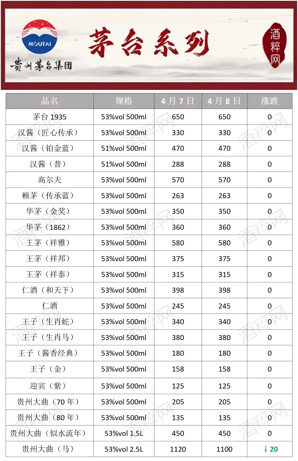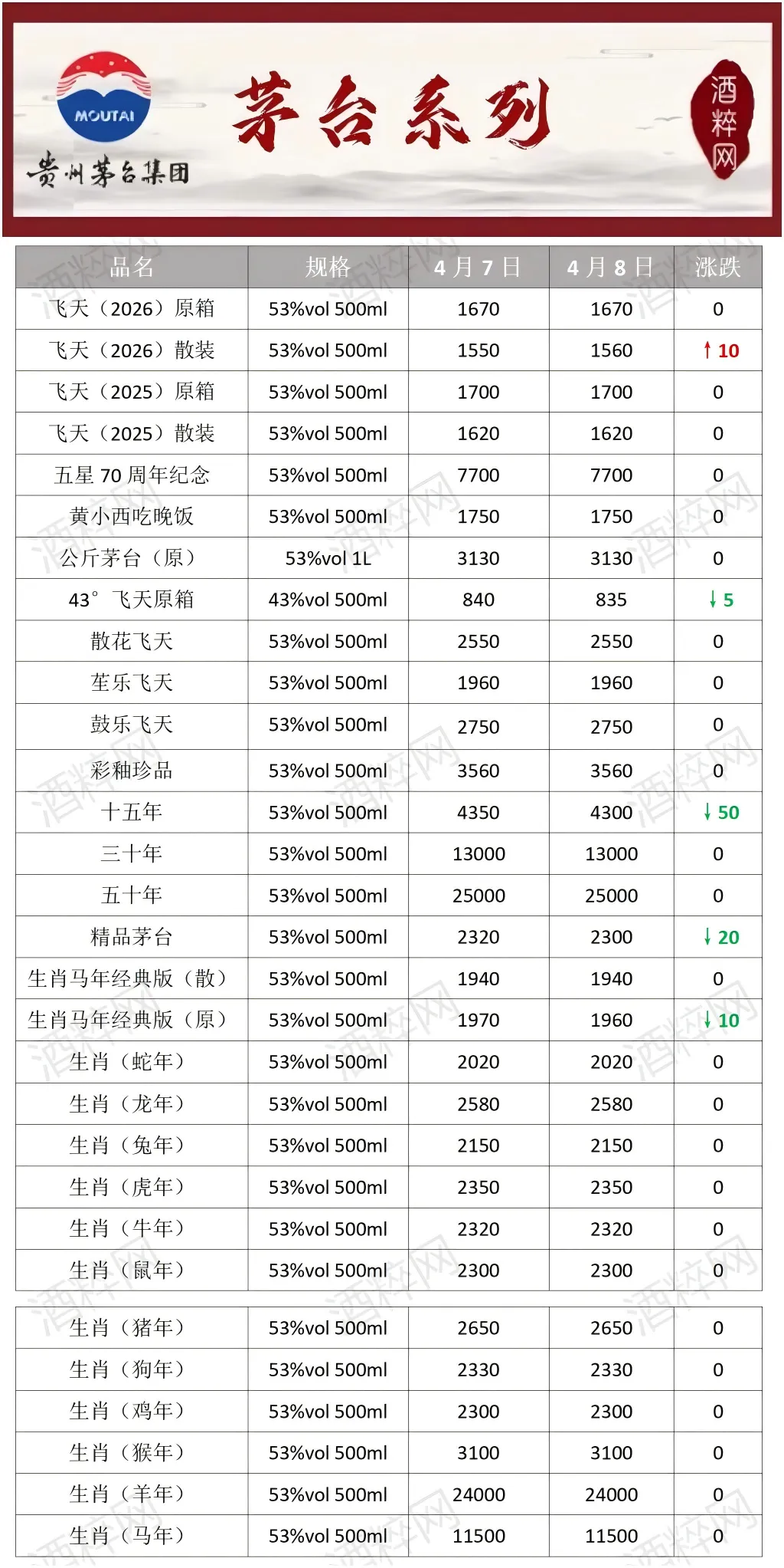 当前位置:首页>行情>酒粹•日价|4月8日全国名优酒价格行情