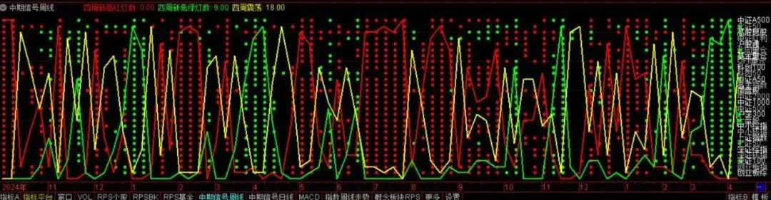 指数中期信号可以看这篇文章。指数中期信号的核心是: 观察一批能代表A股市场的指数走势,日线版是每个交易日收盘后统计指数站上20日移动平均线的个数,周线版是以每周五收盘统计指数创四周新高、四周新低的个数。