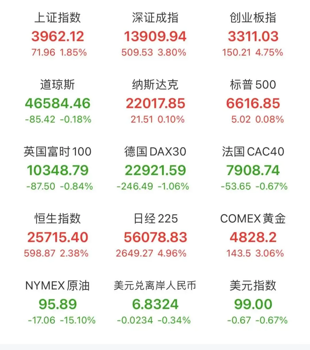 美伊暂停火,原油巨鲸轰然暴跌,油价狂泄不止,油气板块集体重挫!黄金冲高震荡,避险资金进退博弈;A 股彻底引爆情绪,资金疯狂涌入科技成长,一鲸落、万物生,市场全面回暖,主线火力全开!印度基金lof(164824),溢价率2.28%,限额1000,支持一拖六。