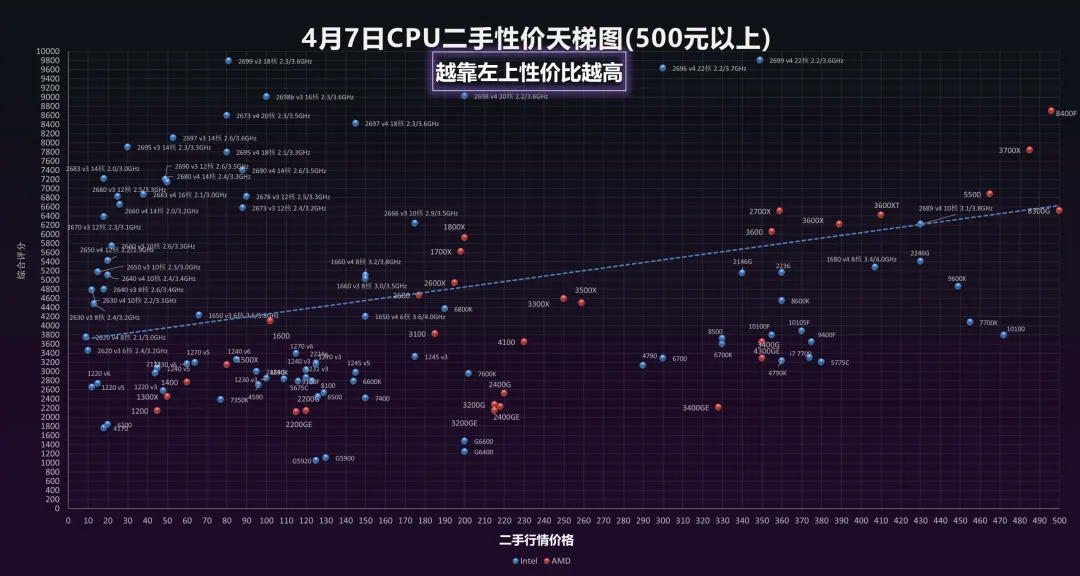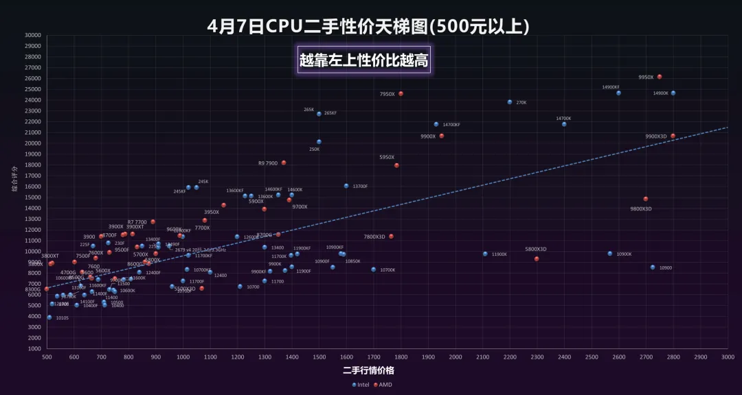 二手CPU性价比数据已更新,还是老规矩,这里放原图。今天完全从主观出发,点评下全系AM5接口的二手CPU,看哪个值得买。📉 第一梯队:APU及无核显APU(AMD史上最坑APU)