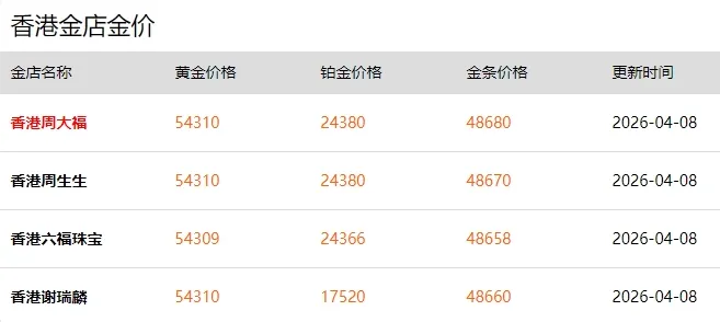 今日金价行情,今日金价查询表( 2026年4月8日)
