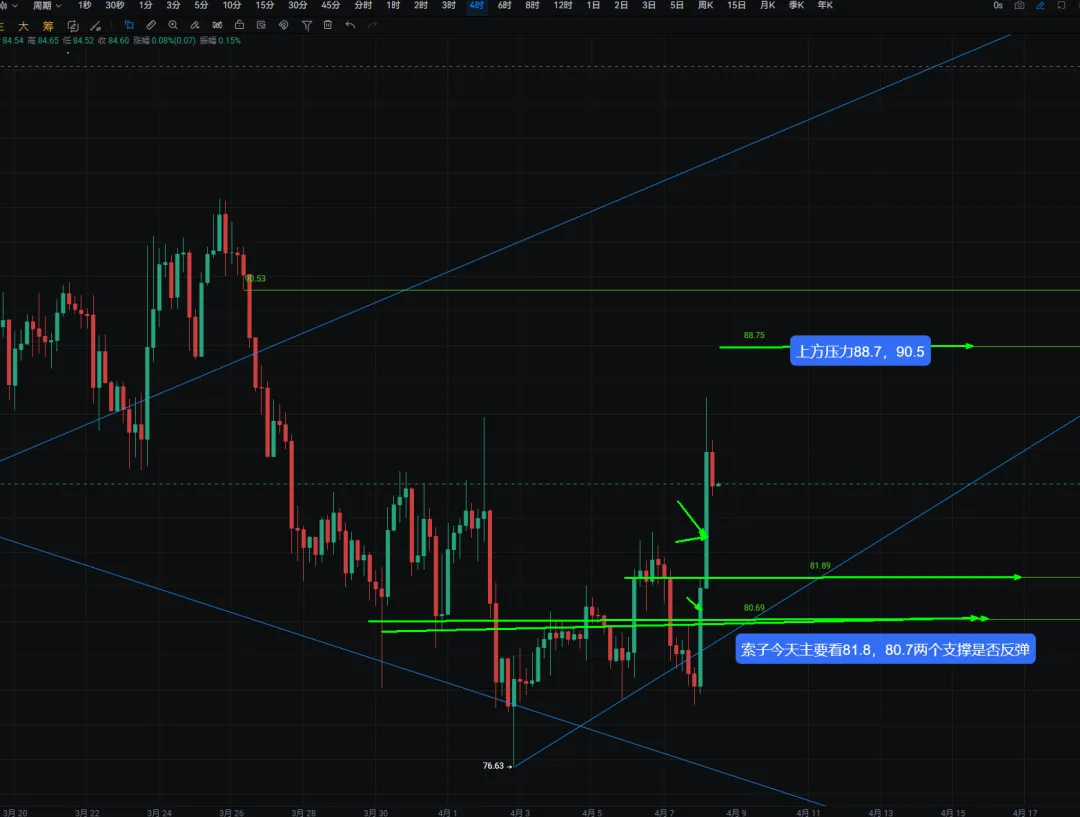 $SOL 索子今天也是看81.9,80.7两个位置是否会有反弹,如果没有回调到位,80.7,90.5两个压力位看是否回调。索子高空低多还是可以参与的。$ETH 以太要继续看反弹的话,下方支撑2140-2120必须防守住,上方压力2310,如果2310压制不了行情,那就会继续冲高了。综上,大饼的行情又和三月中的行情很像了,这里需要连阳以完成突破,否则还会是诱多完毕回归日线中轨的走势,所以关键支撑得有防守反弹,不然这行情就回归猴市了。