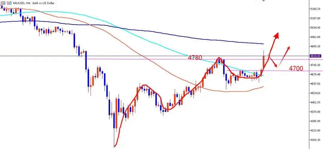 近期黄金市场受地缘局势与宏观预期双重驱动,行情波动显著放大,昨日金价走出典型的探底回升走势,我们从技术面维度,做客观的行情复盘与信号解读。昨日黄金早盘高开于4658一线,行情先回撤至4616位置,随后反弹遇阻4694压力位,再度下探触及日线低点4607后企稳回升,尾盘时段冲高至4718一线,日线最终收出一根下影线较长的倒纺锤小阳线。从K线形态来看,这根带长下影线的K线,客观反映出日内价格下行过程中,下方存在一定的买盘承接力量,但目前走势并未形成明确的趋势反转结构,上方4850一带仍存在较为显著的前期压制。日线级别技术指标方面,MACD指标在低位出现金叉雏形,但对应的动能柱并未出现明显放量,意味着本轮多头反弹的动能尚未形成持续发力的状态;RSI指标从前期超卖区域回升后,目前已接近中性偏高区间,侧面反映出短线反弹的空间或存在一定限制,需警惕行情冲高回落的波动风险。