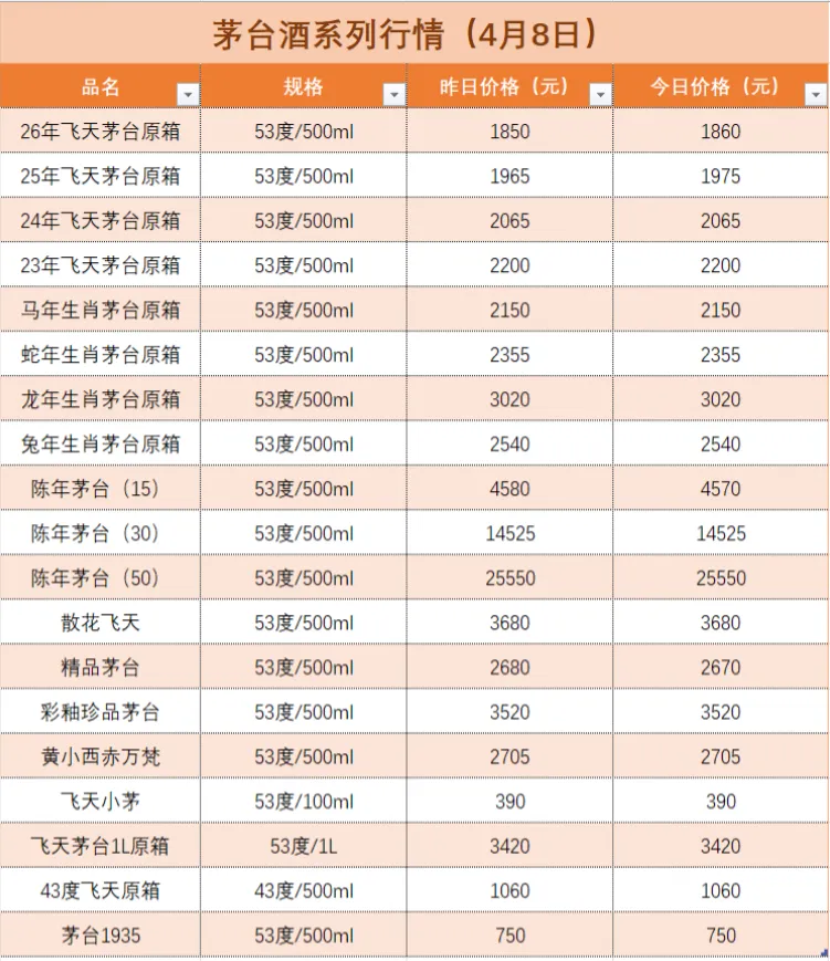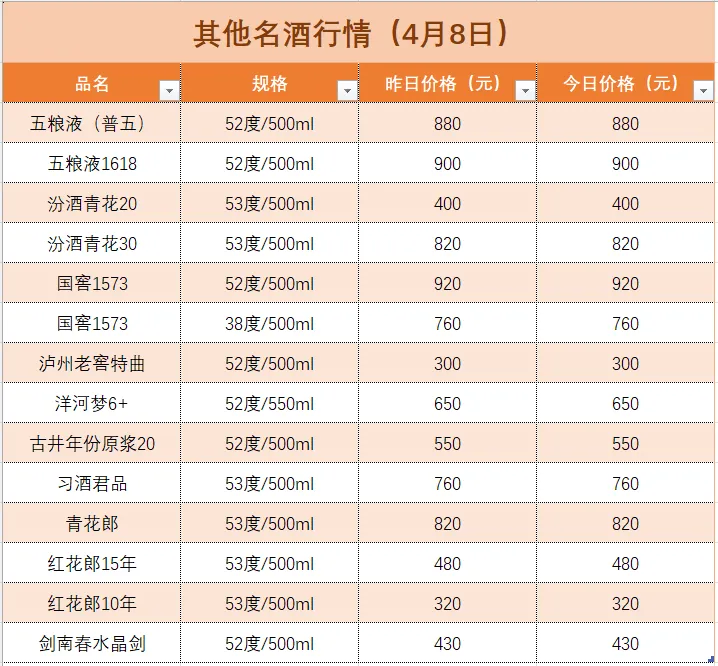 名酒行情(4月8日)