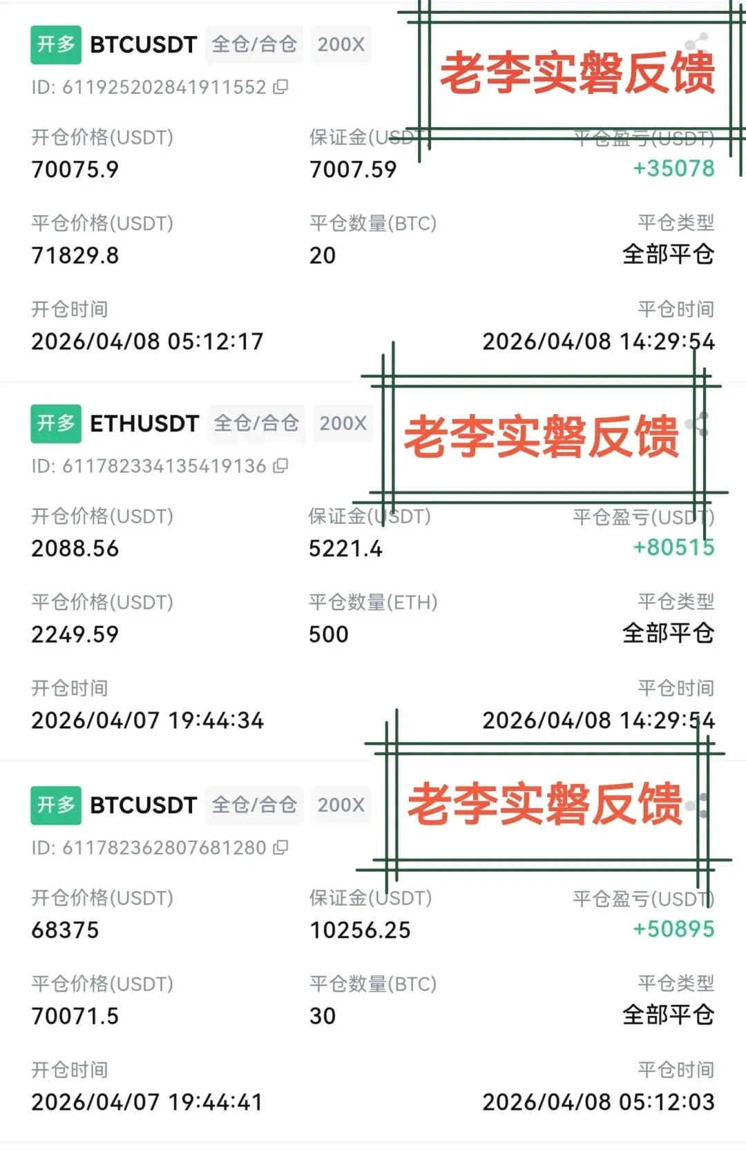 昨日看涨思路再次精准把控拿捏!大饼昨日晚间先是上探至69000关口附近后,然后先给出一波有力的回撤,再次试探下方支撑,企稳后开始走阳,比价一路拉升高涨,大饼最高涨至72743一线,以太最高涨至2273一线,我们实磐布局的大饼以太多丹也纷纷迎来洛带,拿的住丹子,才守得住莉润!昨日二次提醒回踩即是接多的机会,相信大家只要围绕老李的思路参与做丹,都有不菲的收获。