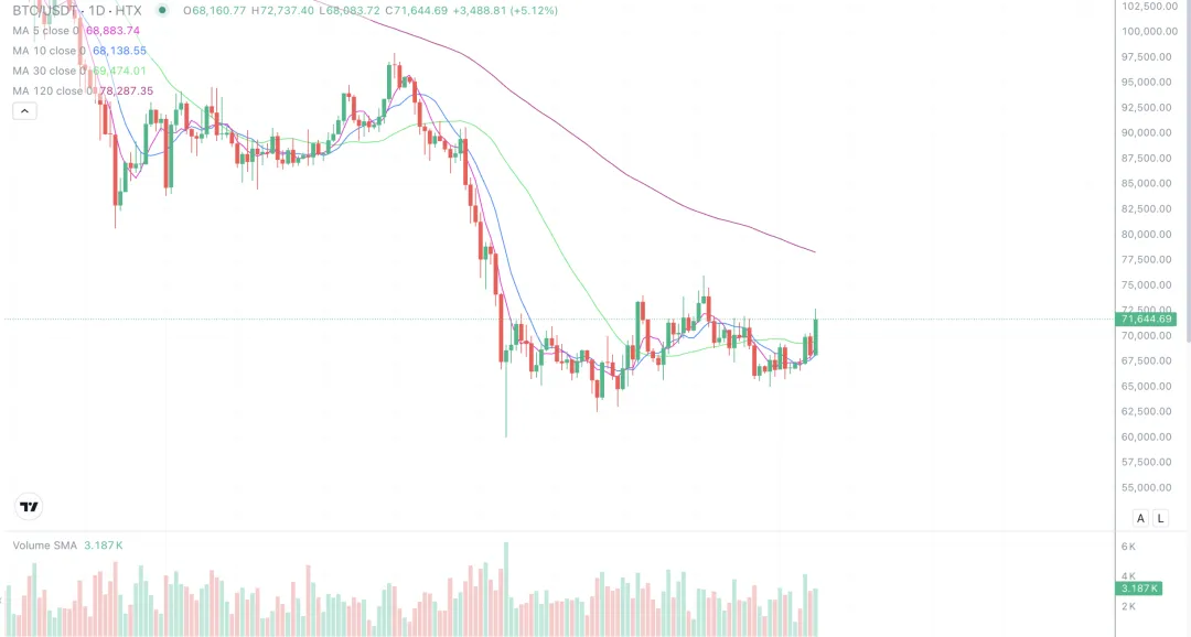 回到今天的盘面,这次上涨的本质就是受到停战协议消息面的影响,已经完全脱离了技术层面的意料之外的事情,接下来行情应该会稳定一段时间,如果说出现持续的上涨,我认为也不太现实,毕竟现在只是停火,并且特朗普的嘴一天八百个观点,谁知道他会不会单方面撕毁协议,毕竟之前是有案例的,这也是资金不敢无脑冲的最大原因。我个人预计不会突破120日均线,后续如果有接近120日均线的机会,我认为是一次比较不错的高空机会。