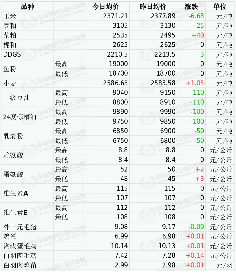 备注:每日行情汇总各品种报价截止时间为11:30,统计时间的不同会造成当日价格有小幅差异可能。