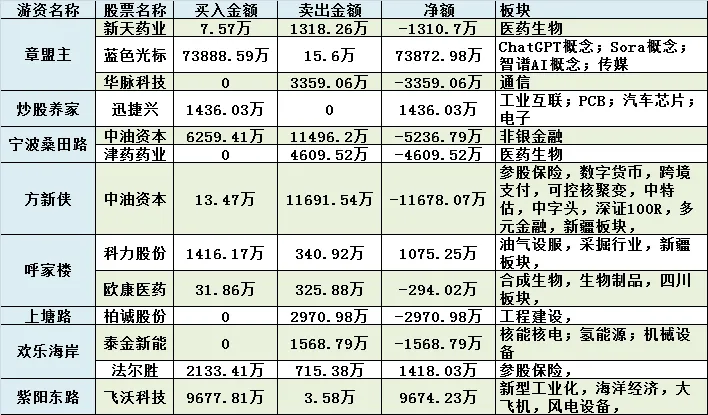 - 医药防御主线集中兑现:章盟主卖出新天药业 1310.7 万元,宁波桑田路卖出前期 7 连板龙头津药药业 4609.52 万元,两大游资合计近 6000 万元撤离前期抱团的医药防御标的,对应医药板块今日整体跑输大盘,与游资兑现动作完全匹配。