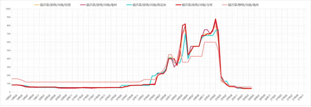 猫爪草行情低迷,可供货源有量,近期走销一般,现市场猫爪草水洗货多报价在40-42元之间,继续关注后期货源走销情况。