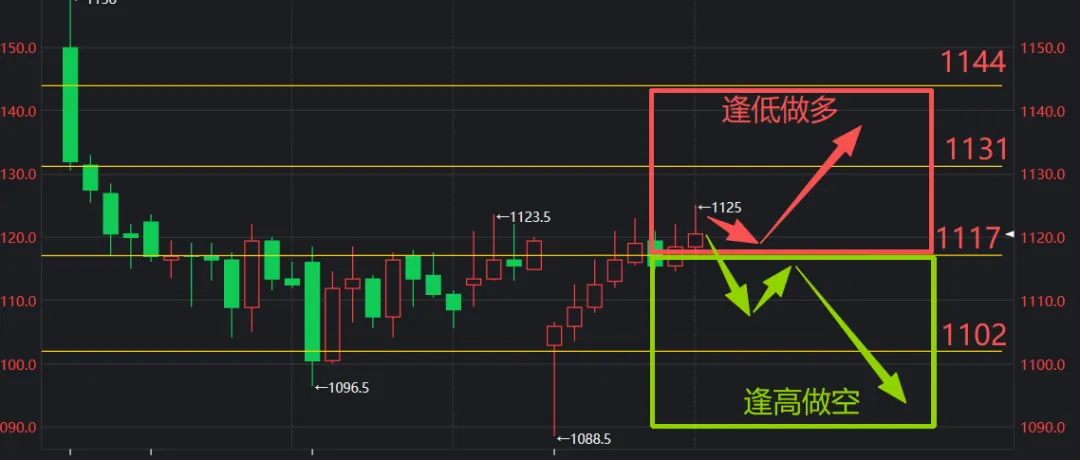 所以策略可定为逢高做空,止损放在1133。