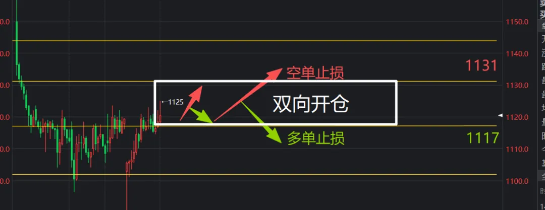 假设价格碰到1133,空单止损。