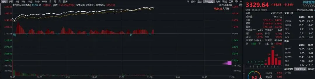 4月8日,A股迎来强势放量大涨,彻底点燃市场情绪!沪指单日大涨2.69%,收盘逼近4000点关口,深证成指大涨4.79%,创业板、科创50指数更是飙升超5%;两市成交额狂飙至2.43万亿,较前一交易日放量超8000亿,全市场超5100只个股上涨,百股涨停,久违的普涨行情让投资者信心大幅回升。