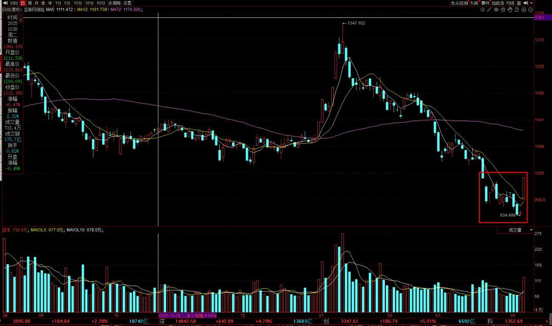 互联网保险今天涨了8%,看着很诱人,但大家要想清楚,想赚这8%,得先扛住之前30%的调整。我还是那句话,这种交易尽量少做,因为过程也太煎熬。