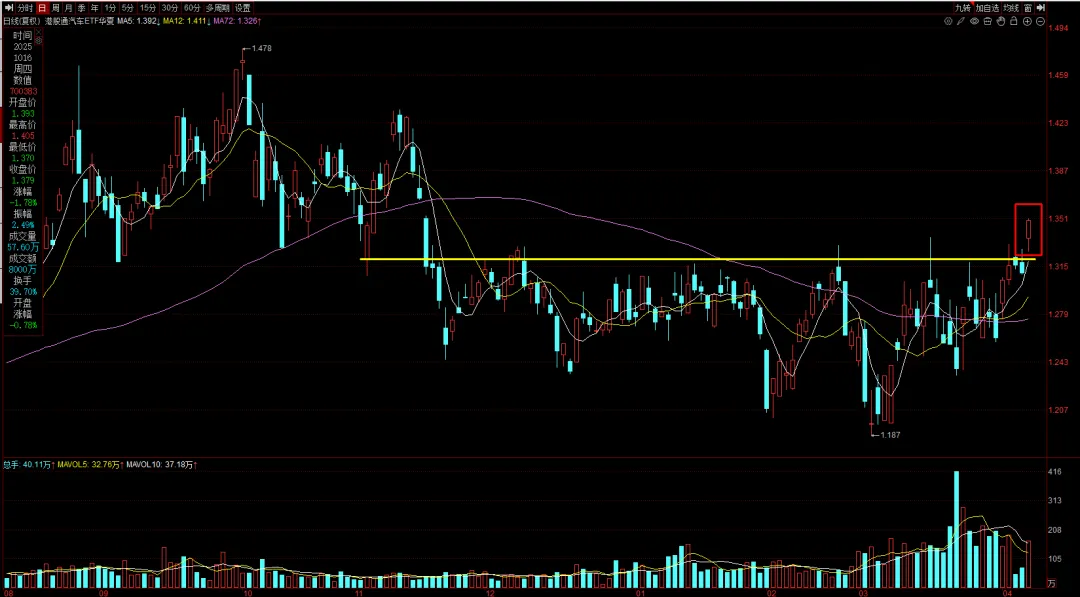 首先来聊4月1号说过的港股通汽车ETF华夏。