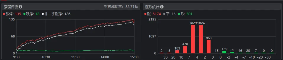 今天两市高举高打,终于来了一次像样的上涨,以104点收涨,也是这几个月涨幅最好的一天,两市5174家上涨,涨停135家,跌停12家,跌停主要是油气方面的,基本上赚钱没有大家的份,亏钱也跟你没关系!