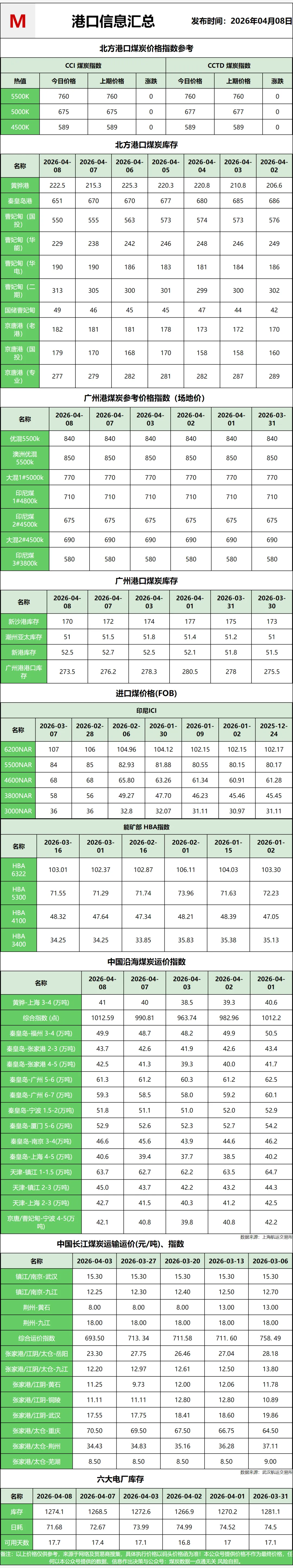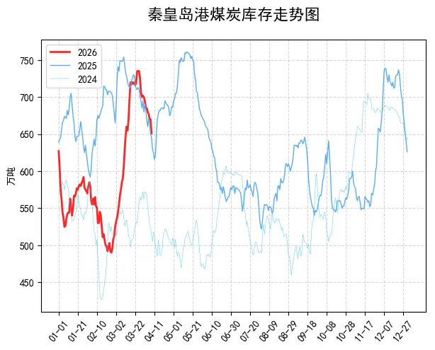 【港口情况】:港口这边就比较平淡,整体呈弱稳观望态势。今天秦皇岛港 Q5500 动力煤主流报价还是在 750 到 760 块钱一吨之间,贸易商偶尔会试探性往上抬价,但实际成交不怎么活跃。环渤海那边的库存还在往下掉,一天能减个十几万吨,可售货源不算多,下游主要是按刚需拿货,整体交投比较僵持。