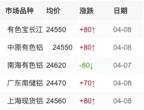 上涨 ! 今日铝价行情!铝锭价格(2026.4.8)