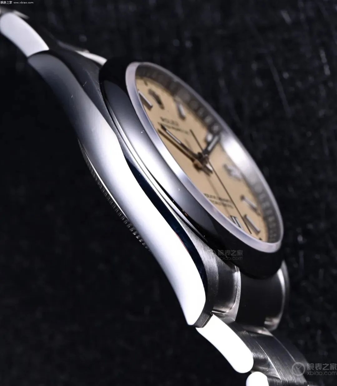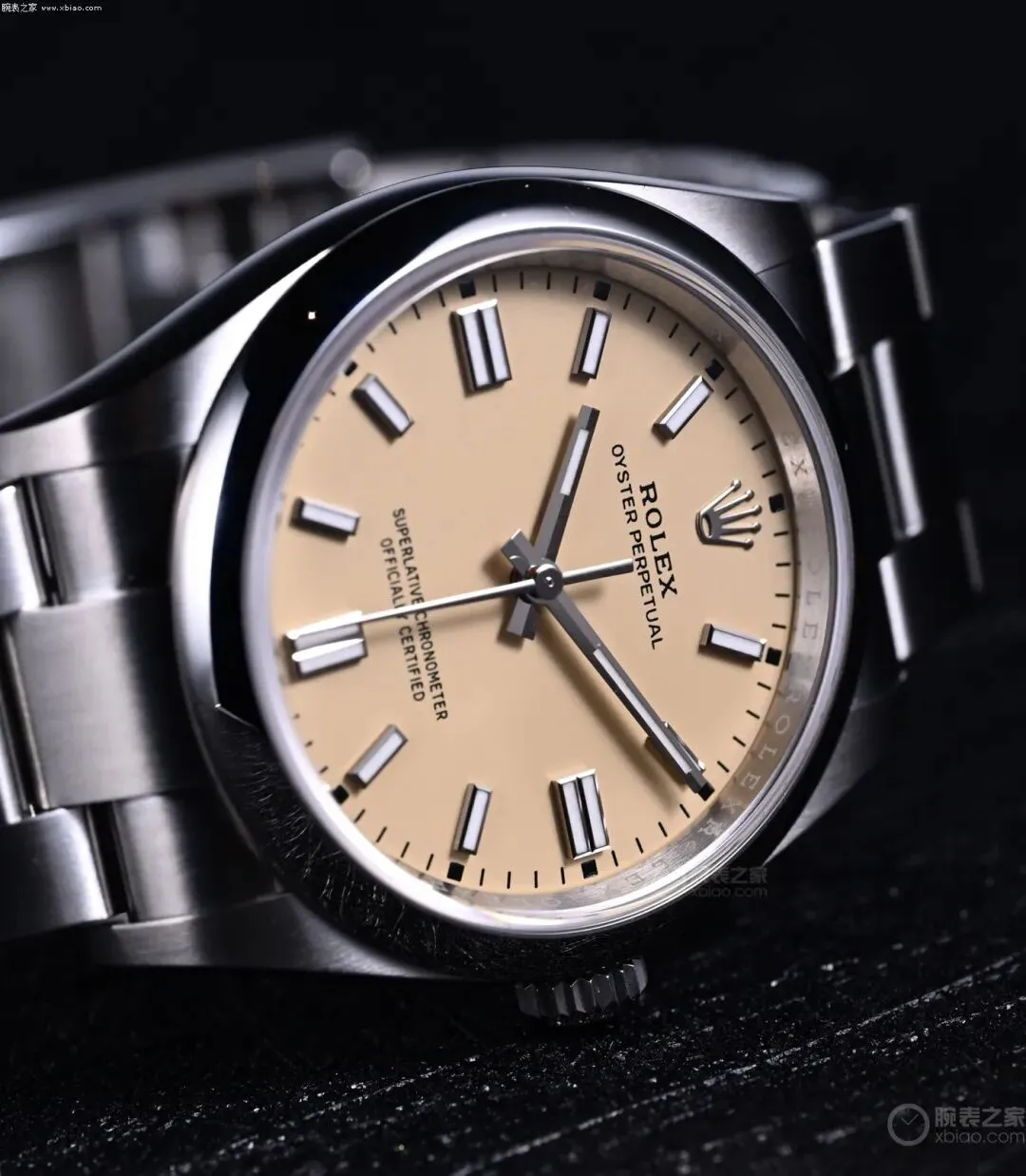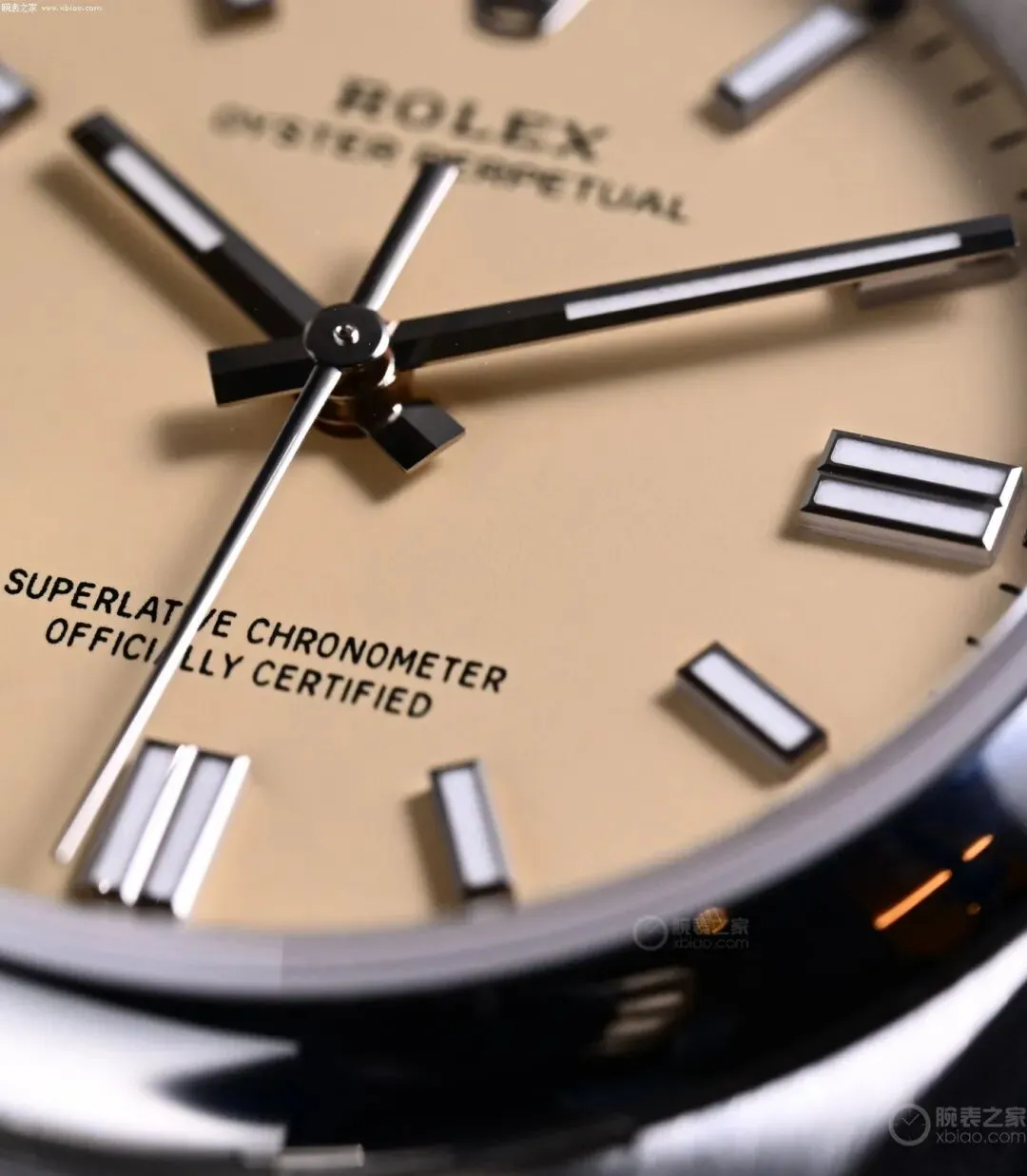 ▲劳力士蚝式恒动,沙漠黄,盘面细节