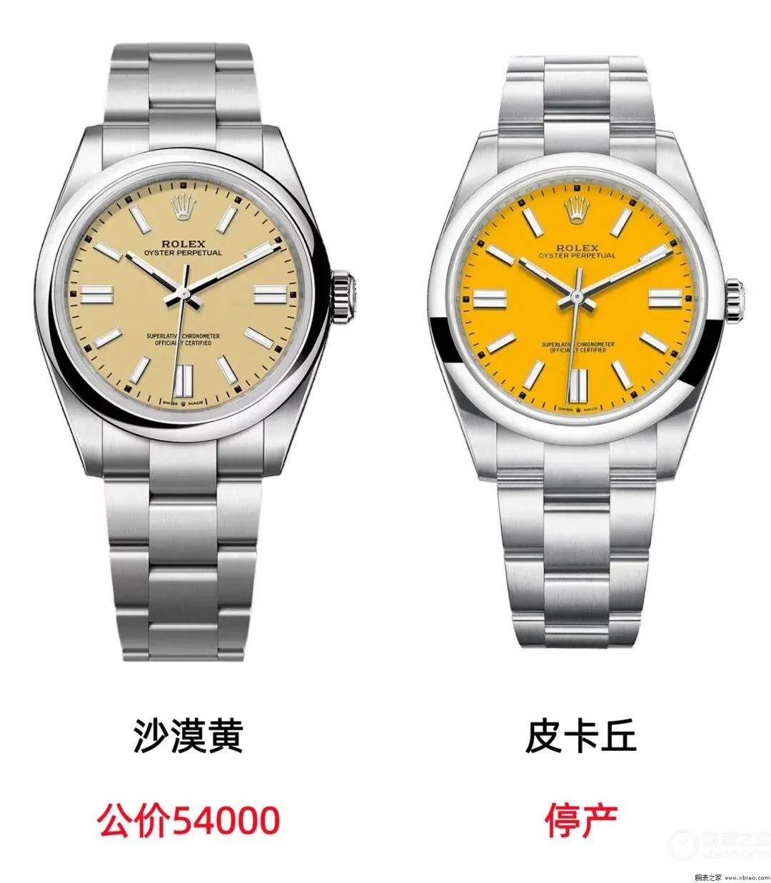 劳力士通过推出“彩盘”,在入门款蚝式恒动上,创造了一个又一个“热炒神话”。在过去的一年里,劳力士同样在蚝式恒动上,推出了全新配色,包括沙漠黄、薰衣草紫。而今天,我想和各位分享的,就是这只新款蚝式恒动“沙漠黄”。并且看一看,当前不同配色的蚝式恒动,在实际行情上的差异。
